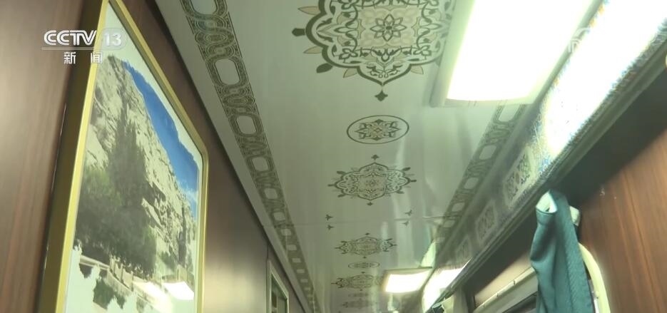 “阿克蘇號(hào)”作為助推新疆經(jīng)濟(jì)和旅游業(yè)發(fā)展的特色品牌列車,車上的軟硬件設(shè)施都獨(dú)具特色。每節(jié)車廂都裝飾有獨(dú)具新疆地域特色的人文景觀、民俗風(fēng)情的圖文介紹,讓旅客能感受到濃郁的新疆特色。