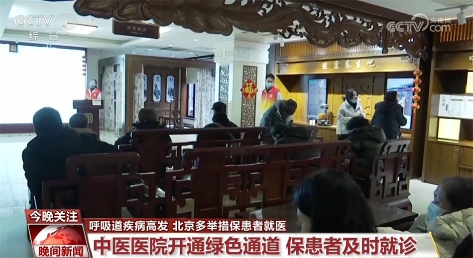 中醫(yī)醫(yī)院也在應(yīng)對(duì)呼吸道疾病就診高峰方面推出多項(xiàng)舉措。在北京市鼓樓中醫(yī)醫(yī)院,記者在候診區(qū)看到,醫(yī)務(wù)人員正在給現(xiàn)場候診和取藥的患者進(jìn)行預(yù)防流感的醫(yī)學(xué)講解。醫(yī)院還對(duì)有需求的老人開通綠色通道,及時(shí)收入醫(yī)院治療。