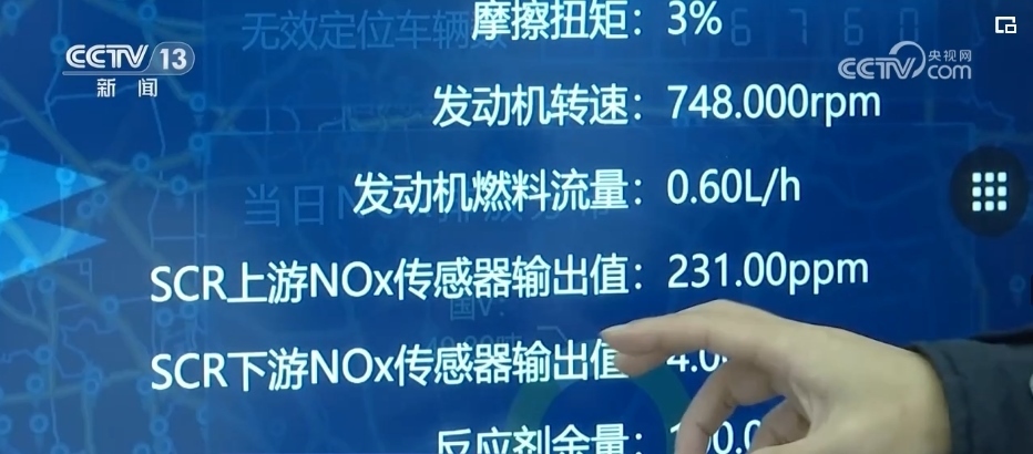 在另外一間實(shí)驗(yàn)室,這塊大屏幕連接著全國(guó)308萬(wàn)國(guó)6柴油車,每輛車發(fā)動(dòng)機(jī)的工作狀態(tài)和污染物的排放裝置是否正常運(yùn)行一目了然。