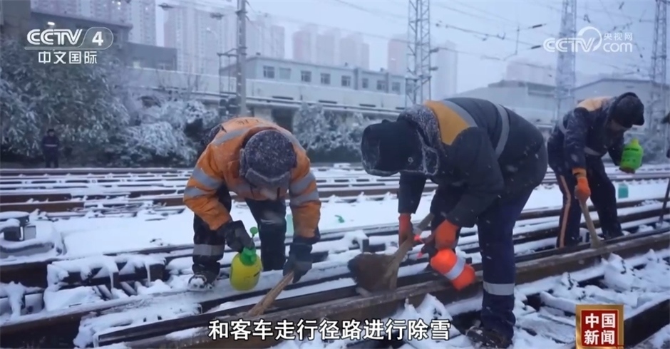國鐵濟(jì)南局濟(jì)南工務(wù)段濟(jì)南線路車間工長 張鑫:著重對道岔的轉(zhuǎn)折部位和客車走行徑路進(jìn)行除雪,清掃積雪后立即噴灑防凍液,確保道岔正常運(yùn)轉(zhuǎn)不結(jié)冰。