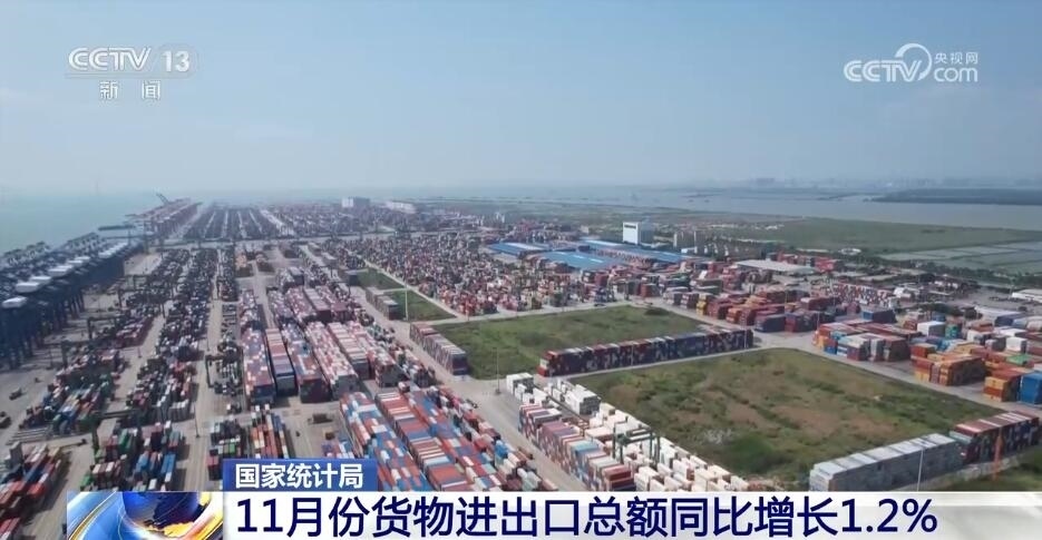 貨物進出口同比增長,貿(mào)易結(jié)構(gòu)繼續(xù)優(yōu)化,11月份,貨物進出口總額同比增長1.2%,比上月加快0.3個百分點。