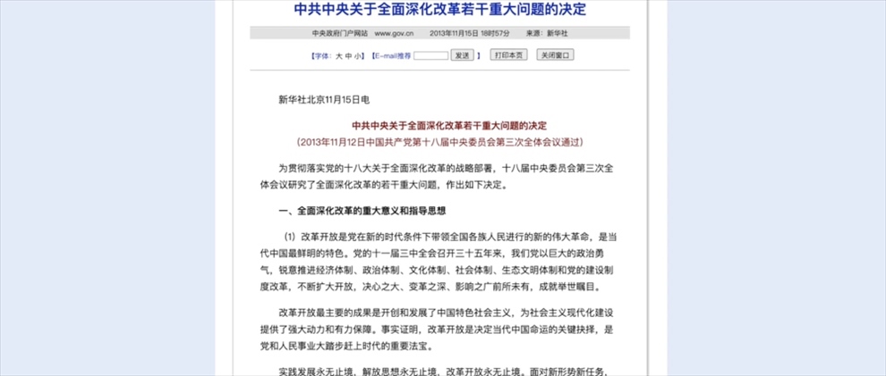 2013年11月,黨的十八屆三中全會(huì)通過由習(xí)近平總書記親自主持起草的《中共中央關(guān)于全面深化改革若干重大問題的決定》?!稕Q定》首次提出全面深化改革的總目標(biāo)——完善和發(fā)展中國特色社會(huì)主義制度,推進(jìn)國家治理體系和治理能力現(xiàn)代化。