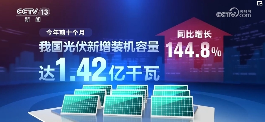 2023年前10個月,我國光伏新增裝機(jī)容量達(dá)1.42億千瓦,同比增長144.8%。