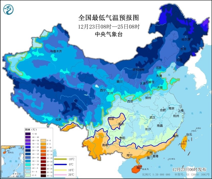 央視網(wǎng)消息:中央氣象臺12月23日06時發(fā)布低溫藍色預(yù)警:預(yù)計,12月23日08時至25日08時,內(nèi)蒙古河套地區(qū)、陜西北部、華北西部和中南部、東北地區(qū)南部、黃淮及其以南大部地區(qū)日最低氣溫或平均氣溫較歷史同期偏低5℃以上,其中,內(nèi)蒙古河套地區(qū)、遼寧北部、河北中南部、江南大部、華南北部等地的部分地區(qū)偏低7℃以上,最低氣溫0℃線將位于貴州西南部至華南北部一帶。