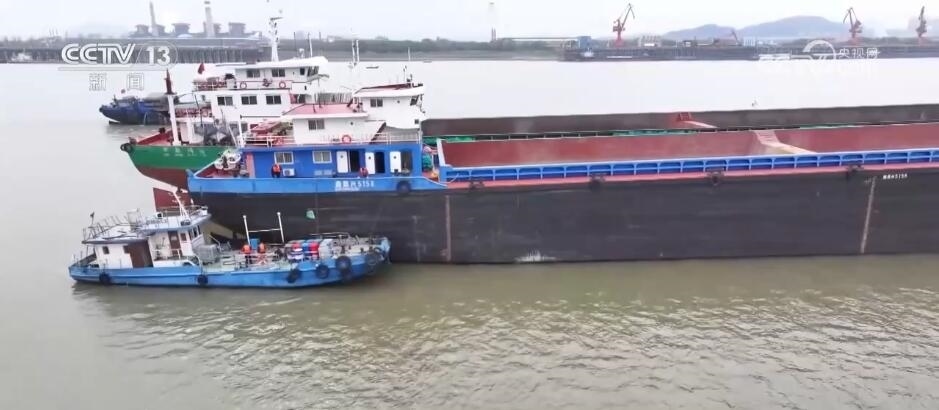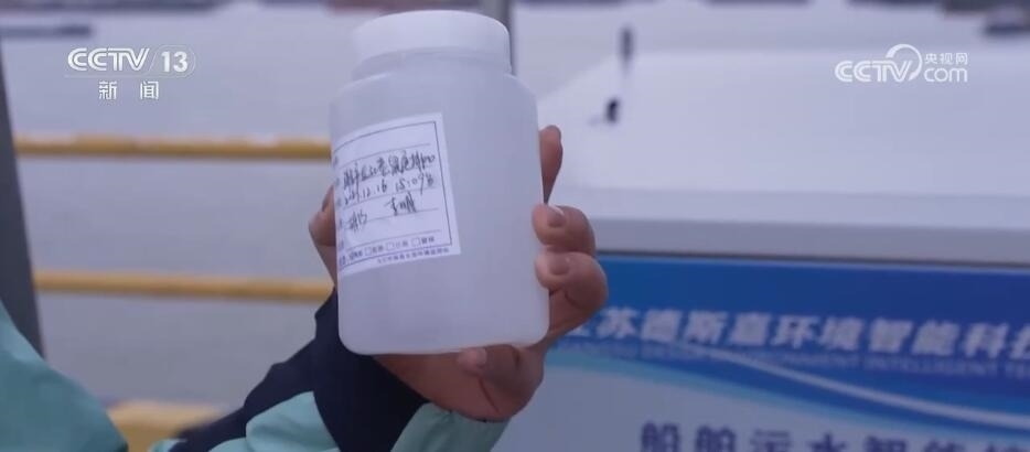 您看,這會在江面上不少大貨船旁都有一艘小船緊挨著它,這艘小船是污染物集中接收船,就相當(dāng)于長江上的“垃圾回收站”,連接兩艘船的管道后,船上生活污水即可被回收到接收裝置中。您看,我手里這杯清澈的水就是集中處理后的污水,目前達到了一級A類的標(biāo)準(zhǔn),也將會被重新直排回長江。?