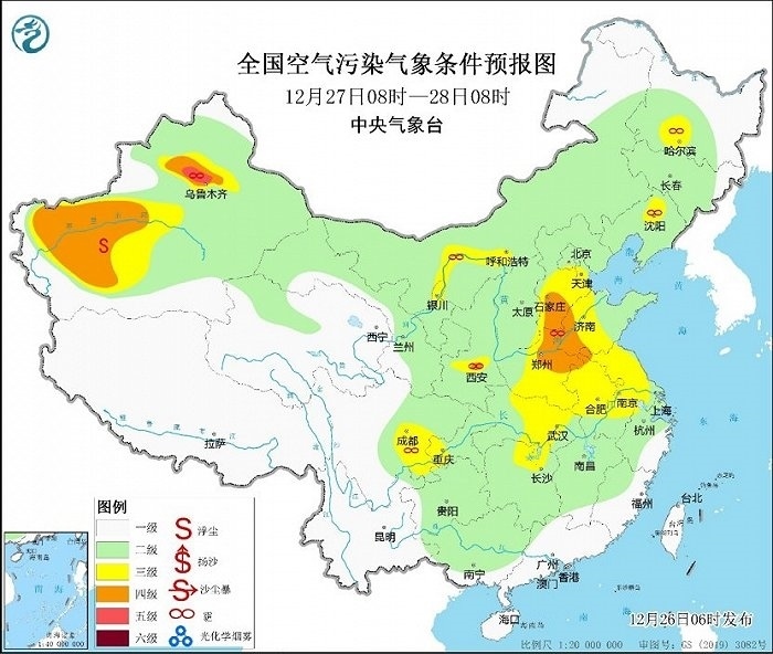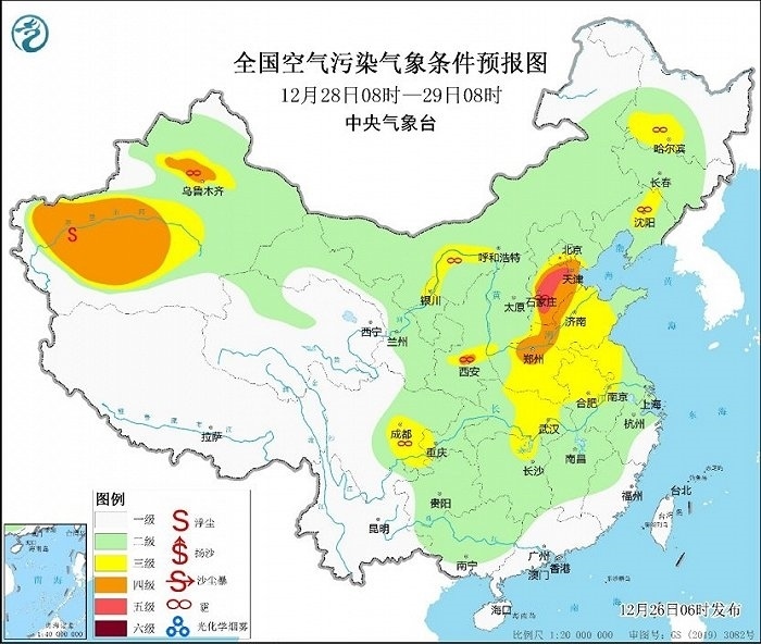 冷空氣勢(shì)力弱,霧和霾天氣又要登場(chǎng)。今天,華北、黃淮等地有輕度霾,局地中度或重度霾,27日華北中南部大氣擴(kuò)散條件將有所改善。28日至30日,華北中南部、黃淮中西部、汾渭平原等地大氣擴(kuò)散條件再次轉(zhuǎn)差,將有輕至中度霾,部分地區(qū)重度霾。此外,28日至30日的夜間至上午時(shí)段,華北中南部、黃淮、江淮東部、江漢、四川盆地等地的部分地區(qū)有大霧,局地有能見(jiàn)度不足200米的強(qiáng)濃霧。