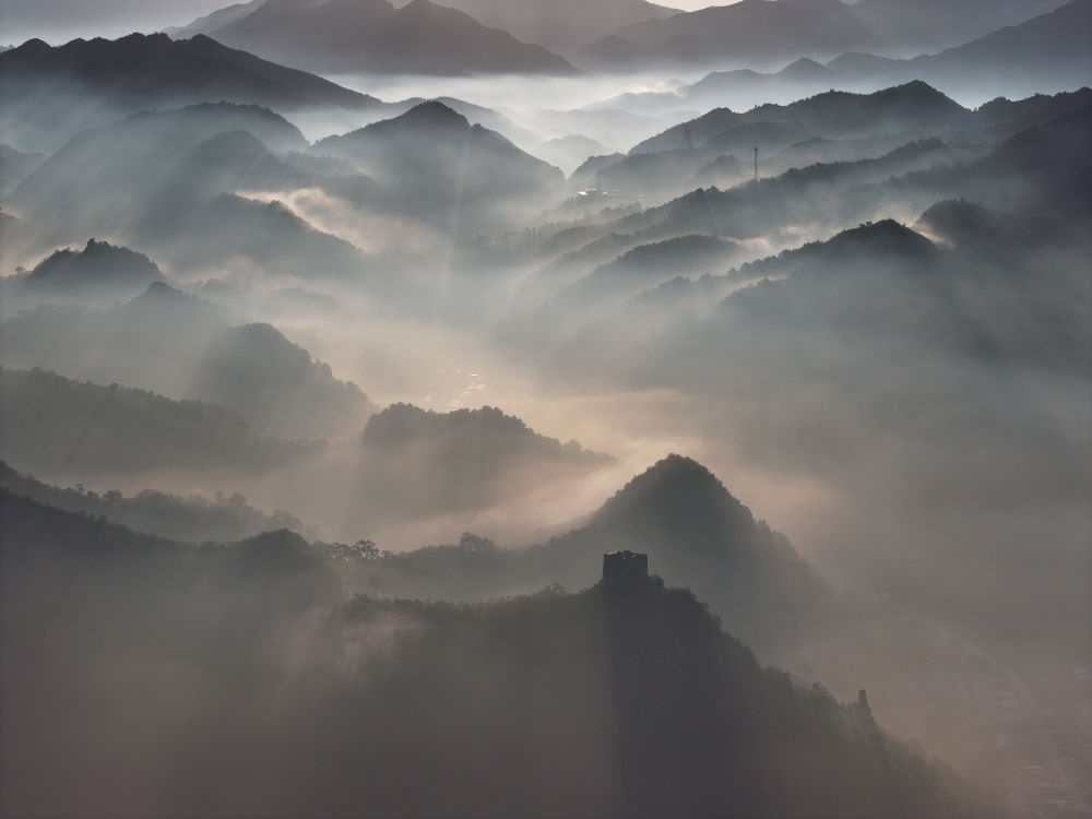 河北唐山遷西縣喜峰口長城景色(無人機照片,2023年8月30日攝)。