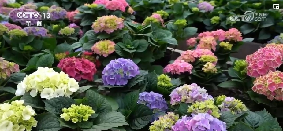 云南楚雄州姚安縣是云南鮮花主產(chǎn)區(qū)之一。眼下,以繡球花為代表的年宵花開(kāi)得正艷。