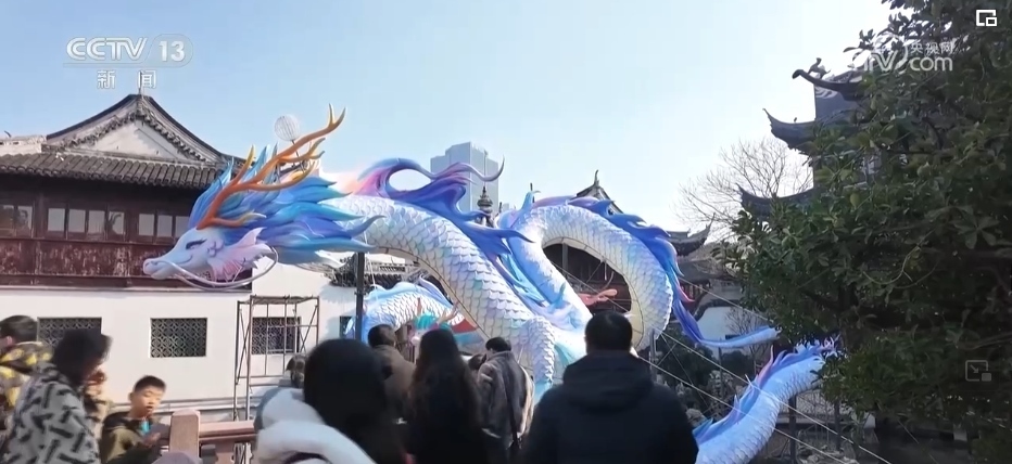 在上海,迎新春的傳統(tǒng)活動(dòng)豫園燈會(huì)正在緊鑼密鼓籌備中。在豫園商城的凝暉路上,名為“一夜魚(yú)龍舞”的主題燈組已經(jīng)亮燈。抬眼望去,多彩的魚(yú)群匯成游龍回旋的姿態(tài),游走在飛檐斗拱之間,呈現(xiàn)出一片繁華景象。