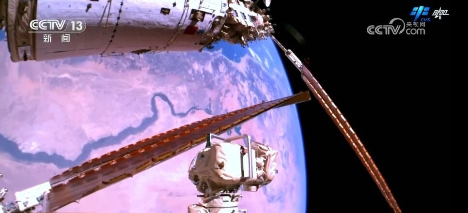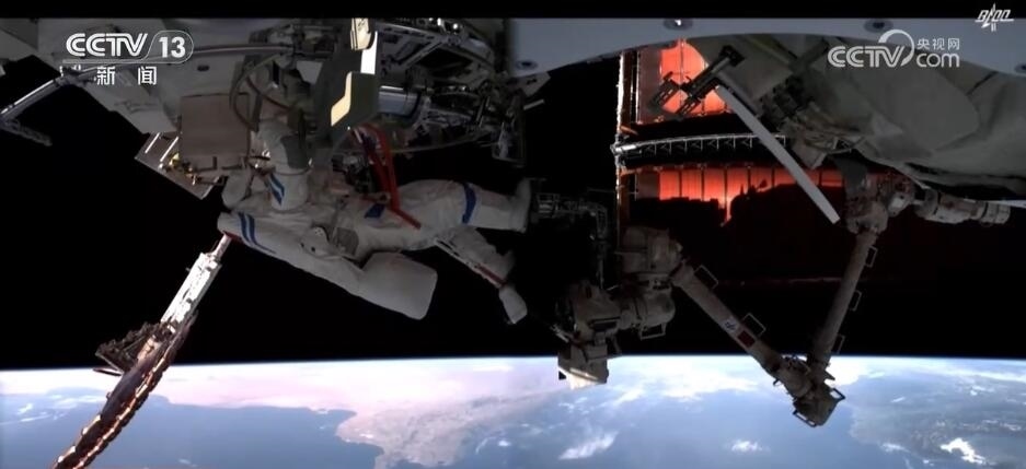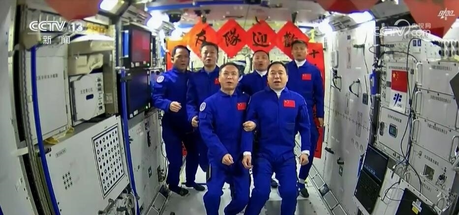 2023年10月26日19時(shí)34分,神舟十六號(hào)航天員乘組打開“家門”,歡迎神舟十七號(hào)航天員湯洪波、唐勝杰、江新林入駐“天宮”。兩個(gè)乘組在軌共同生活了約5天后,神舟十六號(hào)航天員在返回地球途中,還完成了此次飛行任務(wù)最后一項(xiàng)工作,首次拍攝了以地球?yàn)楸尘暗闹袊臻g站全景高清照片。