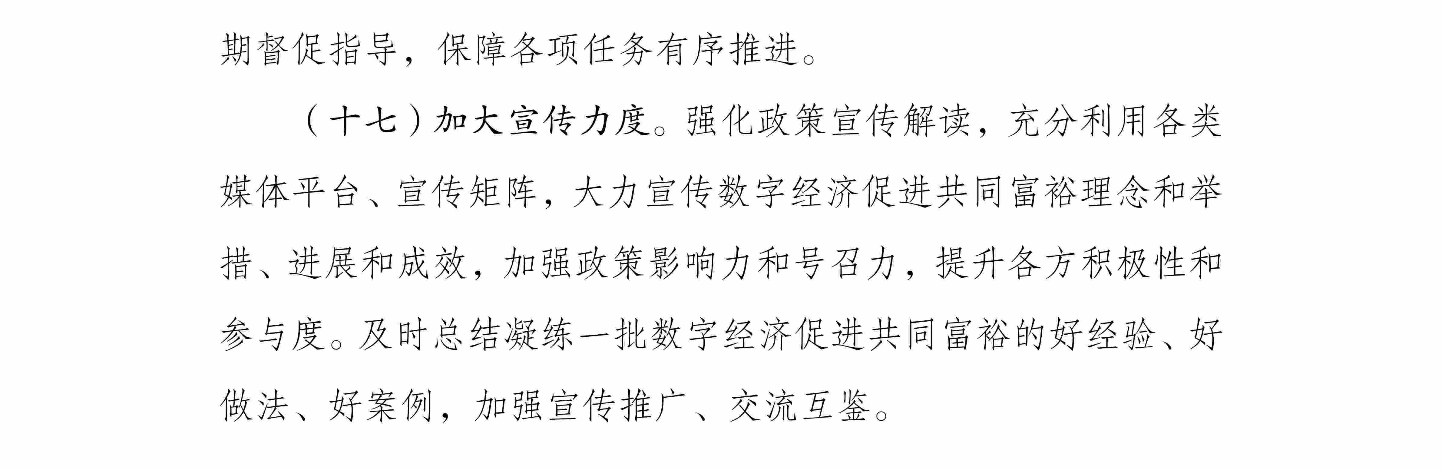 央視網(wǎng)消息:據(jù)國家發(fā)展改革委、國家數(shù)據(jù)局,為全面貫徹黨的二十大精神,按照中央經(jīng)濟工作會議部署,推動數(shù)字技術(shù)和實體經(jīng)濟深度融合,不斷做強做優(yōu)做大我國數(shù)字經(jīng)濟,通過數(shù)字化手段促進解決發(fā)展不平衡不充分問題,推進全體人民共享數(shù)字時代發(fā)展紅利,助力在高質(zhì)量發(fā)展中實現(xiàn)共同富裕,研究制定了《數(shù)字經(jīng)濟促進共同富裕實施方案》。