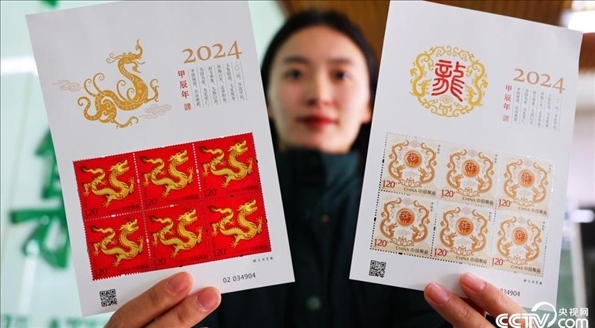 中國(guó)郵政定于2024年1月5日發(fā)行《甲辰年》特種郵票1套2枚,郵票圖案名稱分別為“天龍行健”和“辰龍獻(xiàn)瑞”。