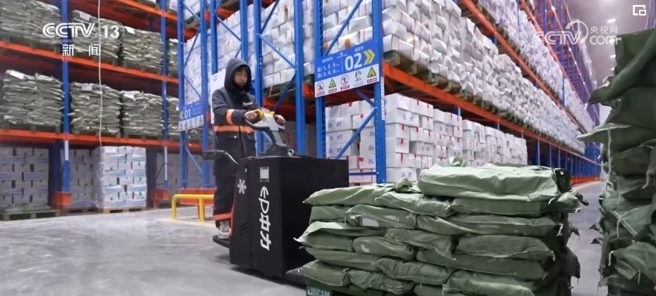 在浙江長興的一家企業(yè)廠房里,廠家工作人員根據(jù)訂單快速分發(fā)、貼單、裝貨;快遞小哥則在一樓出貨區(qū),將叉車上的貨物運(yùn)上郵政貨車。