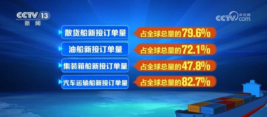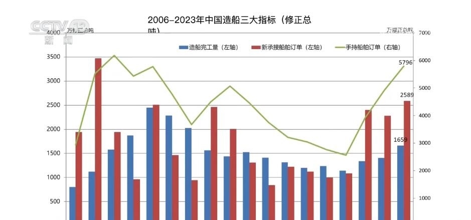 總臺(tái)央視記者 吳天白:在2023年中國(guó)造船業(yè)統(tǒng)計(jì)數(shù)據(jù)中,我們還可以看到三大指標(biāo)占國(guó)際市場(chǎng)份額分別是50.2%、66.6%和55.0%,首次全部超過(guò)50%。