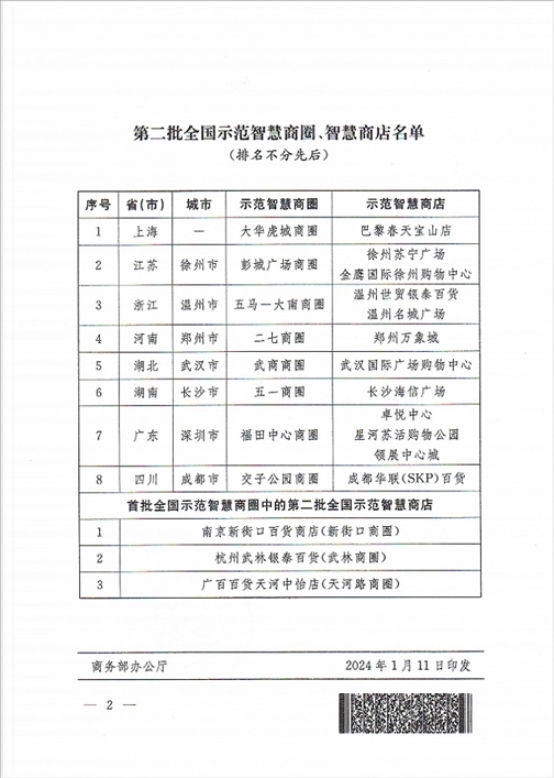 商務(wù)部公布第二批全國示范智慧商圈、智慧商店名單