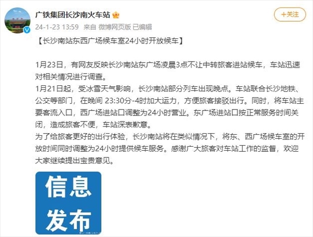 ·凌晨3點(diǎn)不讓中轉(zhuǎn)旅客進(jìn)站候車?長(zhǎng)沙南站致歉并整改:將車站主要客流入口調(diào)整為24小時(shí)營(yíng)業(yè)。