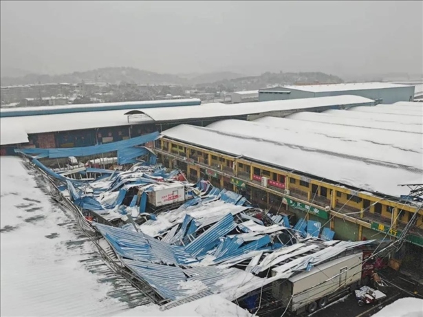 ·湖南郴州一水果大市場(chǎng)頂棚積雪垮塌前預(yù)警及時(shí),百余人成功避險(xiǎn)。