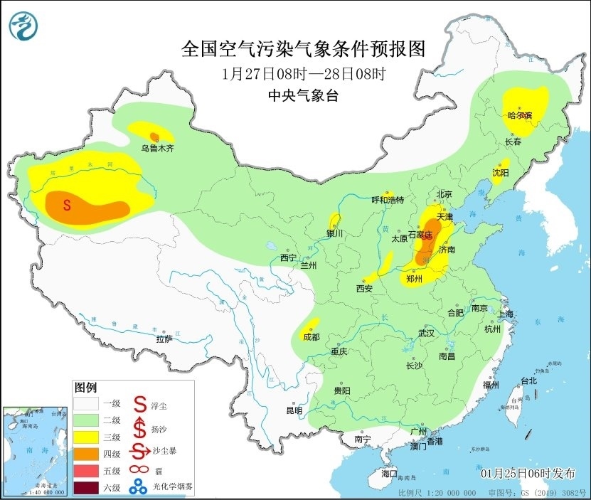 25日至27日,河北南部、河南東部、山東西部等地的部分地區(qū)有間歇性輕度霾。28日至30日,區(qū)域大部大氣擴散條件有所轉(zhuǎn)差,有輕至中度霾,局地重度霾。