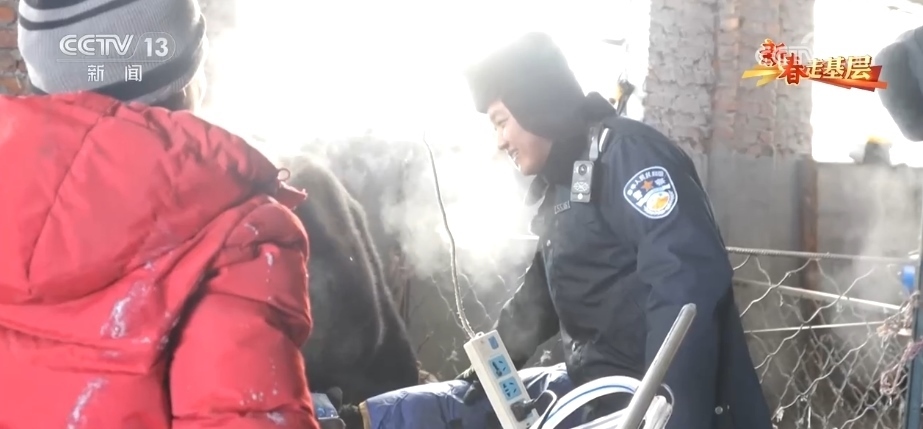 我們?cè)诓稍L(fǎng)期間,還碰上了在冰雪路段剎車(chē)失靈導(dǎo)致側(cè)翻的兩位過(guò)客。驚魂未定的兩人被路過(guò)的轄區(qū)民警帶到了馬背警隊(duì),阿其圖一邊安頓二人吃飯休息,一邊幫他們救援拖車(chē)。