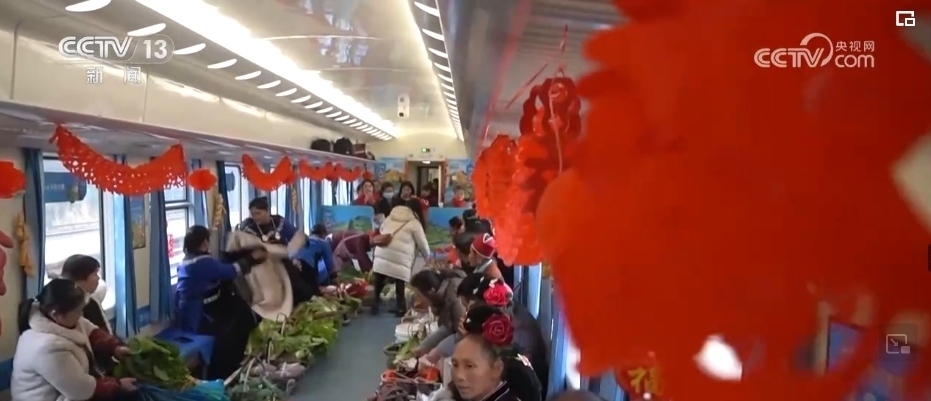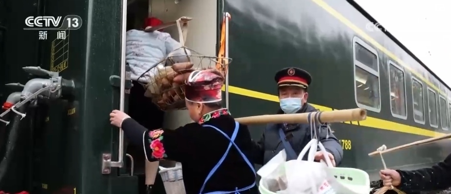 這趟“慢火車(chē)”,是鄉(xiāng)親們走親訪友的“幸??燔?chē)”,更是把大山里的農(nóng)特產(chǎn)品送到山外售賣(mài)的“致富快車(chē)”。新春臨近,列車(chē)上的農(nóng)特產(chǎn)品車(chē)廂變得熱鬧起來(lái),村民們將自家的年貨拿上車(chē)售賣(mài),車(chē)廂里喜氣洋洋。