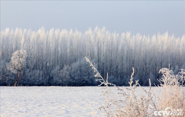 2024年1月31日,新疆塔城,裕民縣出現(xiàn)大面積霧凇景觀,樹木銀裝素裹,玉樹瓊枝,景色迷人。