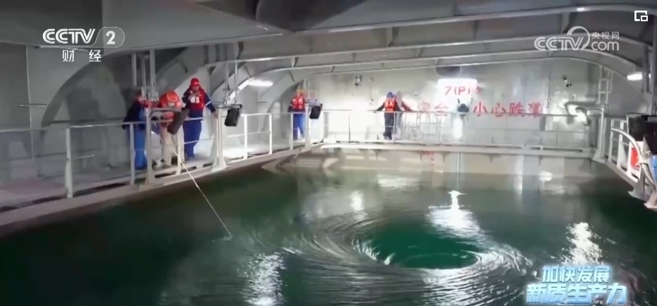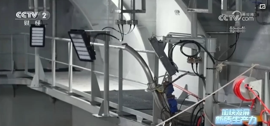 依靠首創(chuàng)的“船載艙養(yǎng)”模式,國信1號養(yǎng)殖工船,每年能實現(xiàn)3700噸高品質(zhì)魚類和650噸優(yōu)質(zhì)蛋白的供給。到了收獲的時候,艙內(nèi)的大黃魚將通過吸魚泵和傳送帶直接轉(zhuǎn)運(yùn)至休眠池,在那里進(jìn)行快速降溫休眠鎖鮮。