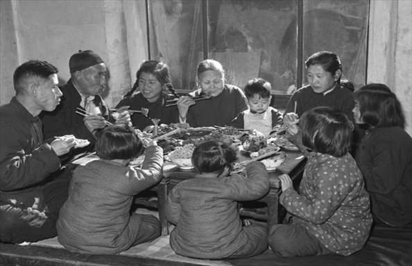 1960年,遼寧鞍鋼老工人于德舉一家在吃年夜飯。為過年準備一頓豐盛的飯菜是當時人們頗費腦筋的事。