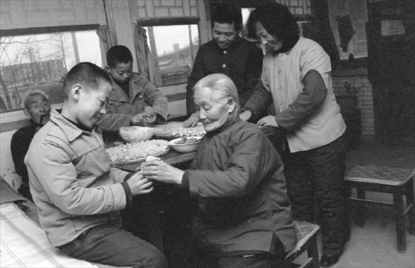 1984年,北京豐臺一家人在包餃子。