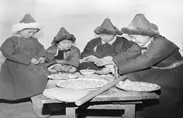 1981年,內蒙古呼倫貝爾牧民高高興興包餃子過春節(jié)。