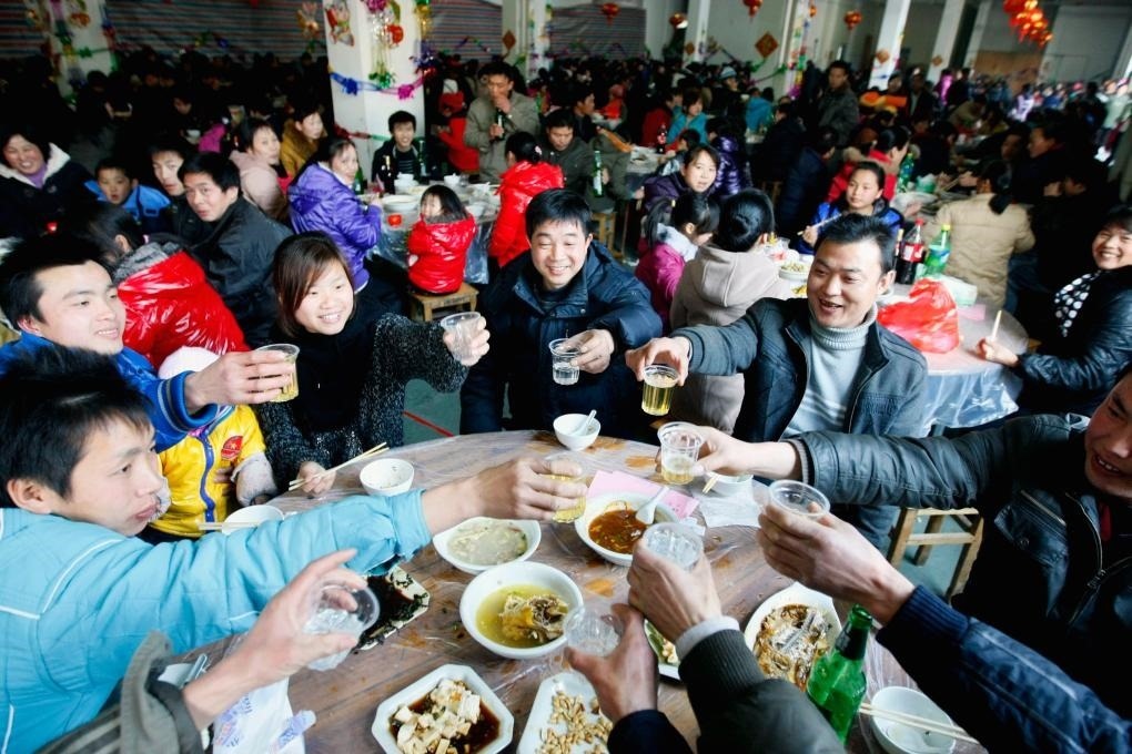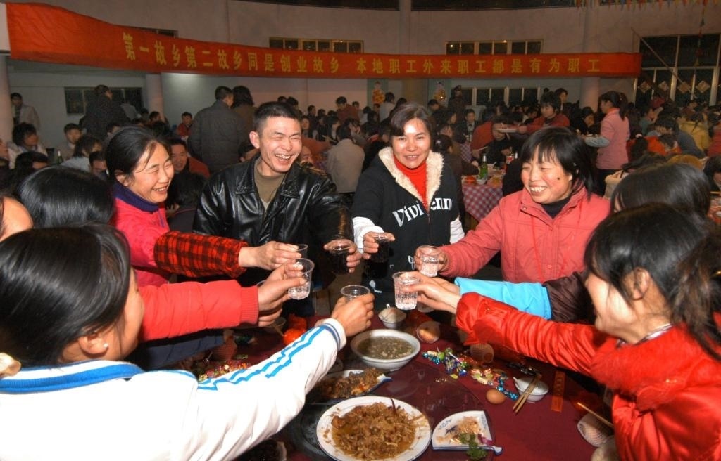 2011年2月2日,浙江諸暨一家公司準備了豐盛的年夜飯,招待800多名沒有回家過年的員工及其家屬,歡聚一堂共迎新年。