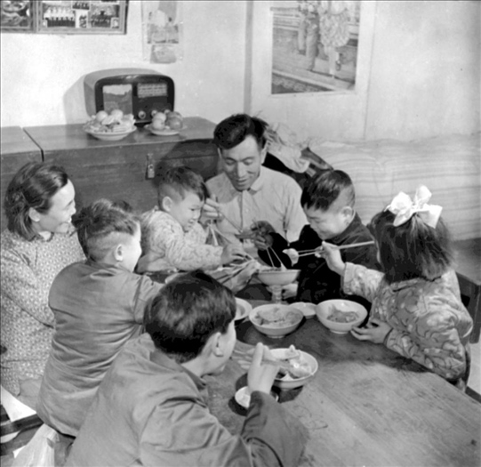 1953年,天津市民王德鑄(左一)一家人吃團圓飯。