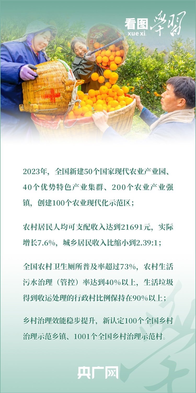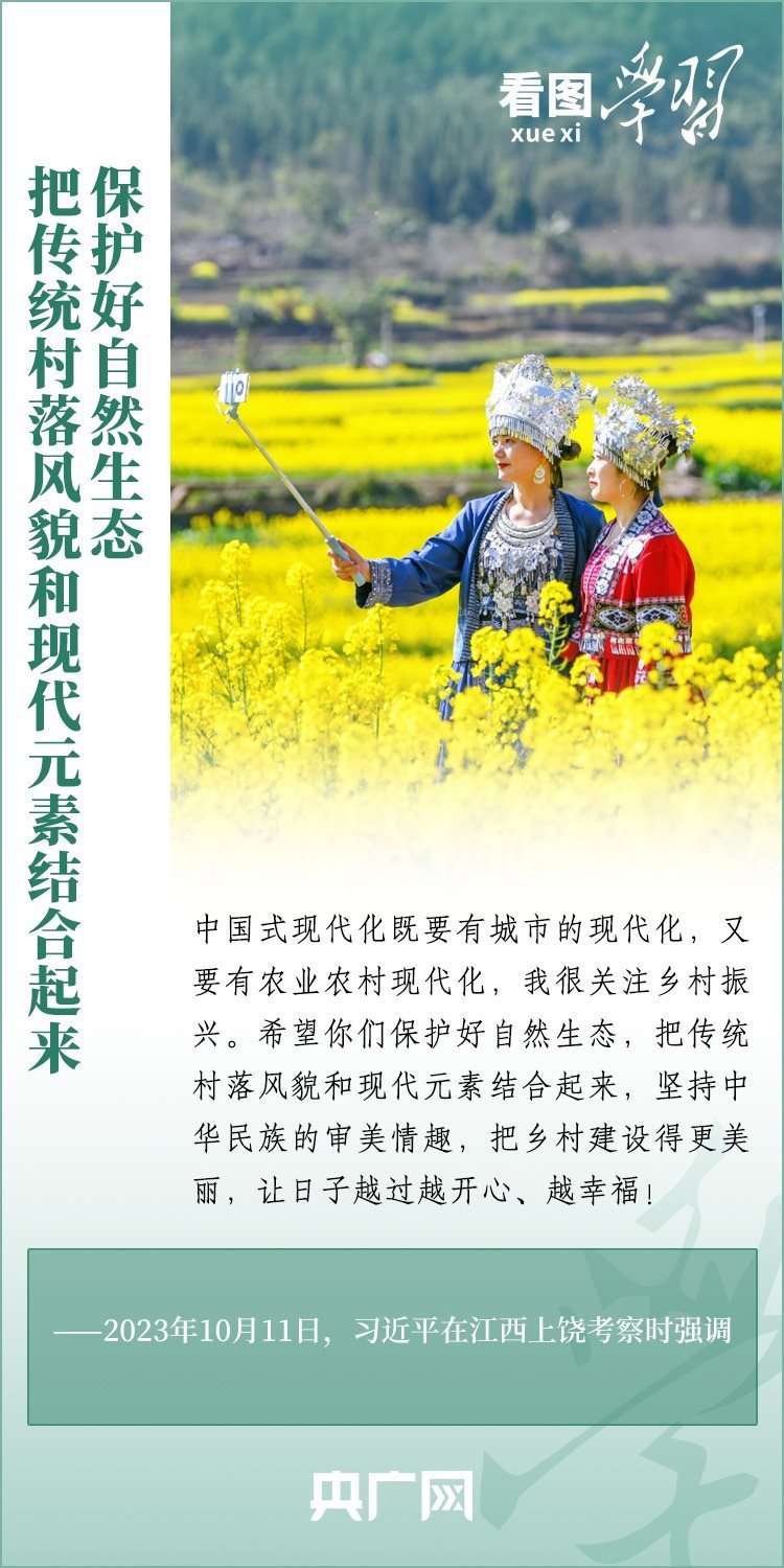 2024年中央一號文件近日發(fā)布,要求各地學(xué)習(xí)運(yùn)用“千村示范、萬村整治”工程經(jīng)驗,有力有效推進(jìn)鄉(xiāng)村全面振興。文件明確提出,要以確保國家糧食安全、確保不發(fā)生規(guī)模性返貧為底線,以提升鄉(xiāng)村產(chǎn)業(yè)發(fā)展水平、提升鄉(xiāng)村建設(shè)水平、提升鄉(xiāng)村治理水平為重點(diǎn),打好鄉(xiāng)村全面振興漂亮仗,繪就宜居宜業(yè)和美鄉(xiāng)村新畫卷。《看圖學(xué)習(xí)》特梳理近兩年習(xí)近平總書記關(guān)于建設(shè)宜居宜業(yè)和美鄉(xiāng)村的重要論述,一起來學(xué)習(xí)!