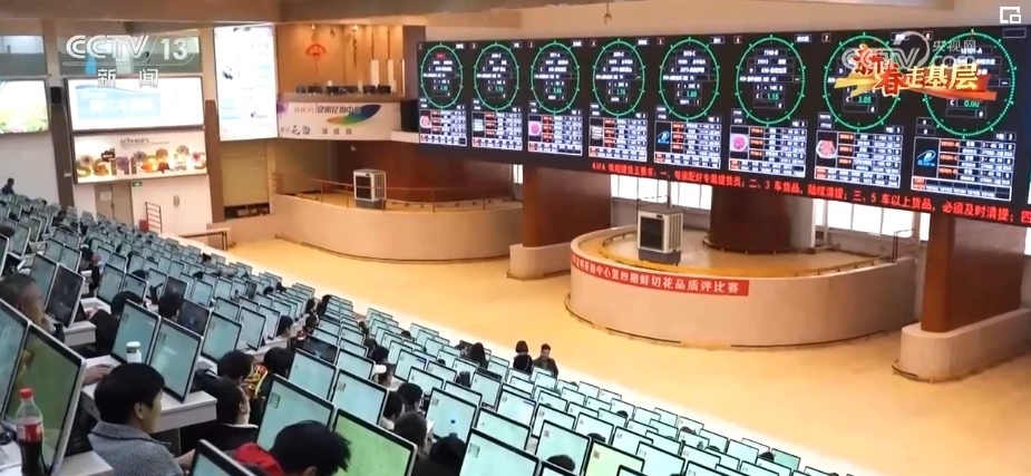 這里是昆明花卉拍賣交易中心,年交易量近25億枝,高峰期每天交易量1100多萬枝。這里的3000多位鮮花經紀人,鏈接著3萬多家供貨商。這里的40多個品類,3000多個品種的鮮切花,市場遍及全球40多個國家和地區(qū)。這里的拍賣交易中心,平均每一筆花的交易時間不到4秒,但凡有點猶豫,就拍不到自己想要的花。