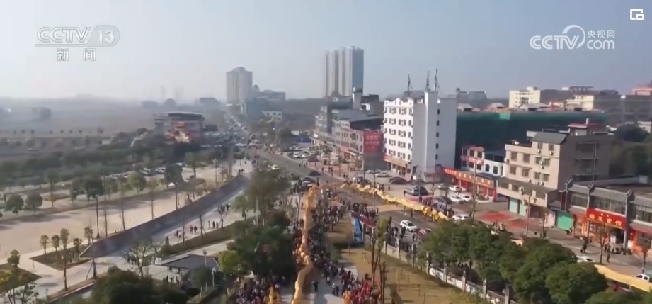 2月10日上午,在廣東韶關(guān)南雄市珠璣古巷,一場(chǎng)盛大的九十九節(jié)龍巡游熱鬧上演。九十九節(jié)龍的龍頭由五種顏色繪制,兩額長(zhǎng)著長(zhǎng)角、兩邊附有魚(yú)鱗片,金光閃閃、色彩鮮艷,龍首龍尾還粘有九十九朵長(zhǎng)壽之花。它在珠璣古巷內(nèi)巡游,為父老鄉(xiāng)親祈福,并分別在珠璣牌坊、百姓堂列隊(duì),用龍身擺出“龍年大吉”“天下太平”的新年祝福。