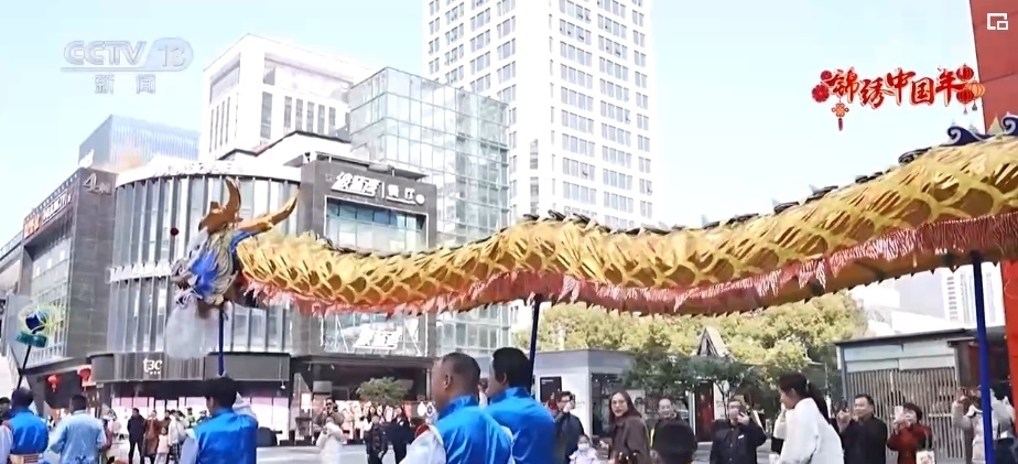 在浙江杭州,一場(chǎng)熱鬧的舞龍巡游活動(dòng)將全城的過(guò)年氛圍拉滿。這條50多米長(zhǎng)的“臨安水龍”,來(lái)回穿梭于杭州各大商圈,做出“水中戲珠”“戲水搏浪”,盤、滾、游、翻等高難度動(dòng)作。最有特色的,是龍身翻舞時(shí)會(huì)帶動(dòng)藍(lán)綢翻滾,呈現(xiàn)出“金龍騰躍于碧浪中”的壯觀景象。龍身盤旋時(shí),還會(huì)秀一把噴水絕活,寓意著龍年順風(fēng)順?biāo)?br>