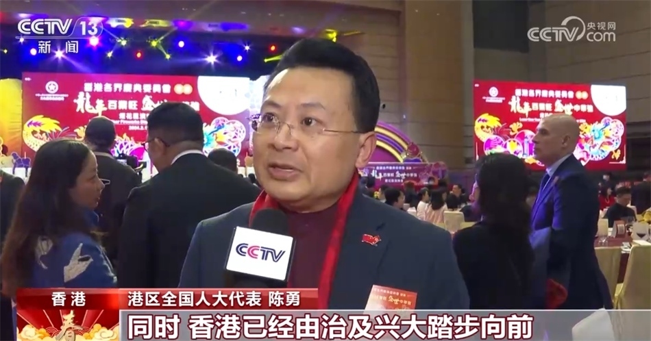 港區(qū)全國(guó)人大代表 陳勇:很多香港的朋友到內(nèi)地(或)留在香港共度一個(gè)歡慶的龍年,同時(shí),香港已經(jīng)由治及興大踏步向前,同時(shí)還助力強(qiáng)國(guó)建設(shè)和民族的復(fù)興。