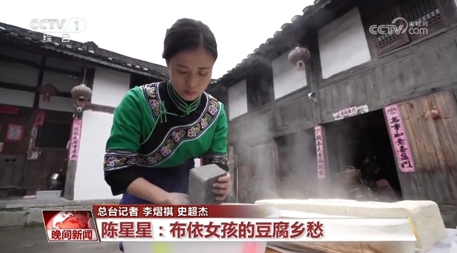 在貴州省貴陽(yáng)市烏當(dāng)區(qū)偏坡布依族鄉(xiāng),陳星星正在錄制最新一期短視頻,通過(guò)布依族山歌推廣市級(jí)非遺豆制品制作技藝。在當(dāng)?shù)兀垢淖龇ǘ喾N多樣:搗碎、糅團(tuán)、油炸、加入折耳根,豆腐圓子外焦里嫩。切薄塊、擺盤、佐以豬耳,鹵豆腐拼盤口味豐富。此外還有農(nóng)家三寶、絲絲相扣、木耳豆腐等菜式。2023年,碩士畢業(yè)的陳星星,沒(méi)有像鄉(xiāng)親們預(yù)期的那樣,考個(gè)城里體面的工作,而是戴上圍裙、挎上竹籃,回到群山環(huán)抱的家鄉(xiāng),做起了灰豆腐事業(yè)。