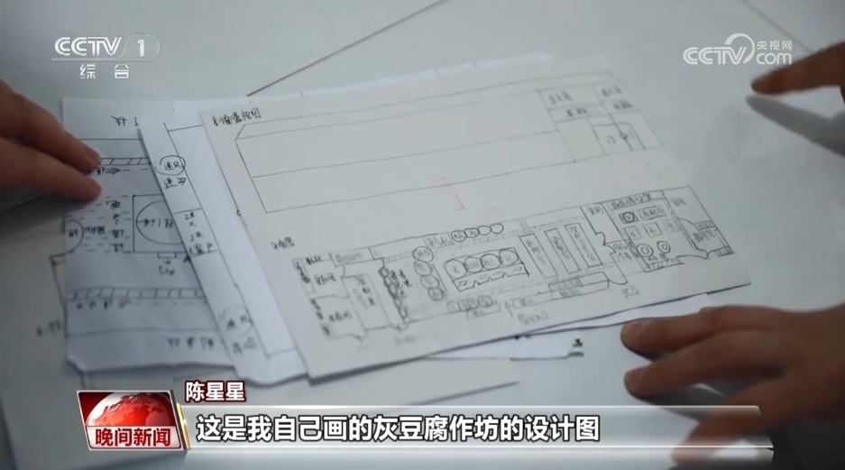 陳星星不斷改進(jìn)自己的作品,得到的關(guān)注越來(lái)越多,灰豆腐的銷路也越來(lái)越廣。眼下,陳星星還在忙活著一件大事情,她親自設(shè)計(jì)的豆腐工坊,馬上就要投入生產(chǎn)。