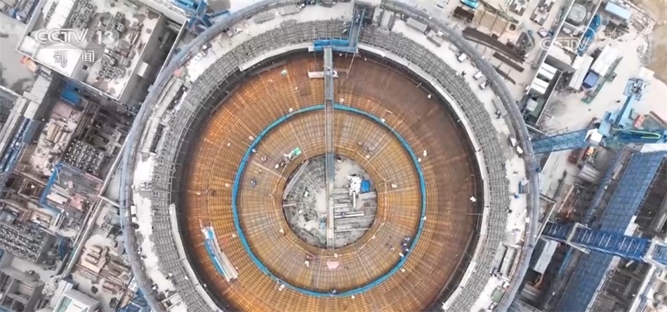 總臺央視記者 吳天白:在“華龍一號”太平嶺1號機組的最高點穹頂,我們可以看到幾十位工作人員正在加緊施工,他們今天的主要工作是對已經完成安裝的穹頂鋼筋進行檢查驗收?,F場工作人員告訴我,別看穹頂面積有5個籃球場這么大,他們的工作都是以毫米為單位的精細活。