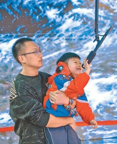 市民在北京城市圖書(shū)館元宇宙體驗(yàn)館內(nèi)游玩。