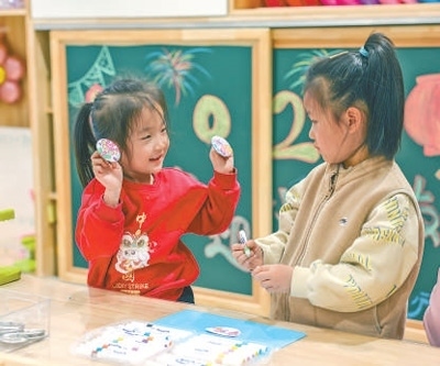 雄安北海幼兒園小朋友在教室里玩耍。