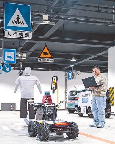 中國(guó)科學(xué)院雄安創(chuàng)新研究院內(nèi),科研人員在測(cè)試自動(dòng)駕駛設(shè)備。