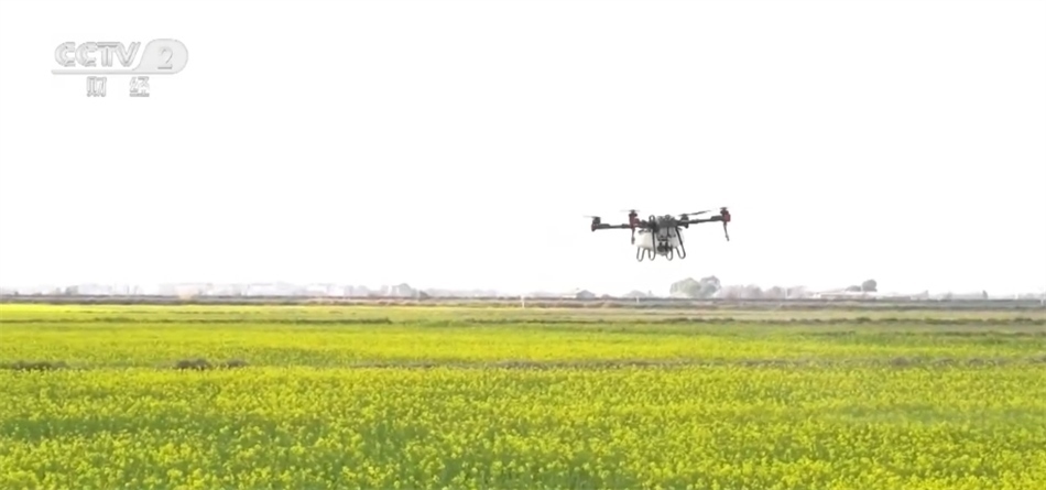 在江西省南昌市新建區(qū)的這個稻油輪作示范基地,金黃的油菜花競相開放?;êI峡?,無人機在專業(yè)人員的操控下,均勻地將肥料和農(nóng)藥噴撒至油菜田間,為油菜提供生長的能量和養(yǎng)分,抑制病菌繁殖,提高油菜結(jié)莢率及產(chǎn)量。