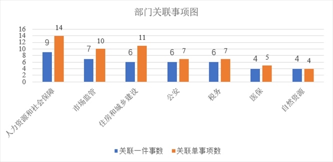 此次新推出第一批13個(gè)重點(diǎn)事項(xiàng)清單,涉及人力資源社會保障、市場監(jiān)管局、住房城鄉(xiāng)建設(shè)等10個(gè)牽頭部門,以及27個(gè)責(zé)任部門和水電氣網(wǎng)等相關(guān)單位。其中,人力資源和社會保障部門關(guān)聯(lián)9個(gè)“一件事”中14個(gè)事項(xiàng);市場監(jiān)管部門關(guān)聯(lián)7個(gè)“一件事”中10個(gè)事項(xiàng);住房和城鄉(xiāng)建設(shè)部門關(guān)聯(lián)6個(gè)“一件事”中11個(gè)事項(xiàng);公安部門關(guān)聯(lián)6個(gè)“一件事”中7個(gè)事項(xiàng);稅務(wù)部門關(guān)聯(lián)4個(gè)“一件事”中6個(gè)事項(xiàng);醫(yī)保部門關(guān)聯(lián)4個(gè)“一件事”中5個(gè)事項(xiàng);自然資源部門關(guān)聯(lián)4個(gè)“一件事”中4個(gè)事項(xiàng)。