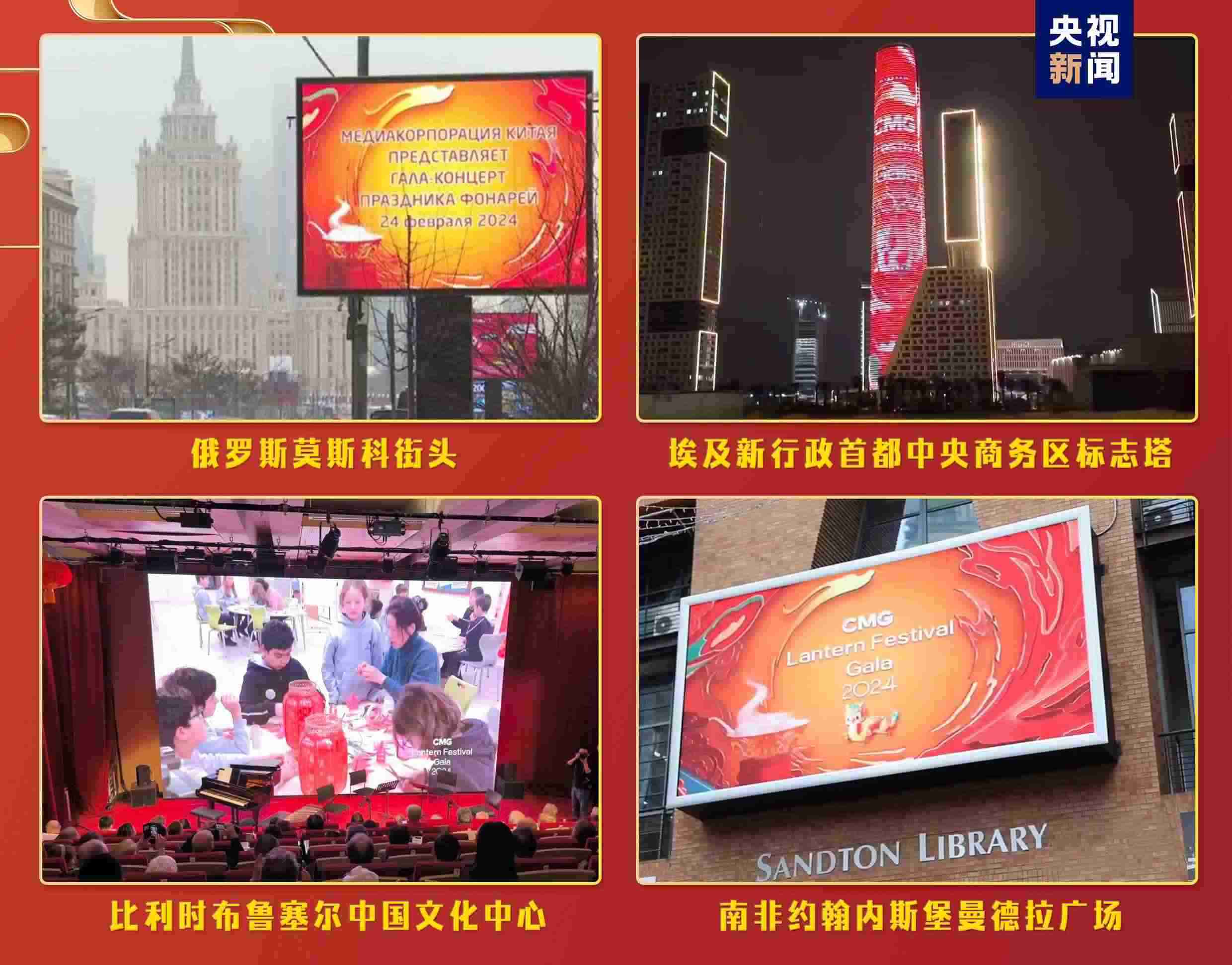 “海外千屏”持續(xù)閃耀,跨越山海點亮全球地標(biāo)。充滿濃郁中國年味兒的《2024年元宵晚會》宣傳片登陸美國、德國、意大利、俄羅斯、南非、巴西、阿聯(lián)酋等全球17個國家、25座城市的2627塊戶外大屏和院線銀幕。意大利米開朗琪羅廣場、非洲第一高樓——埃及新行政首都中央商務(wù)區(qū)標(biāo)志塔等地標(biāo)大屏亮起“中國紅”,帶當(dāng)?shù)孛癖姵两礁惺苤袊?jié)日的喜慶氛圍。