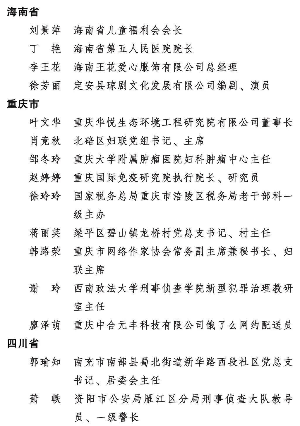 央視網消息:據中國婦女網3月3日消息,為表彰先進、樹立典型,進一步引領激勵廣大婦女跟黨奮進新征程、巾幗建功新時代,全國婦聯決定,授予黃會林等10人全國三八紅旗手標兵稱號,授予王殊等300人全國三八紅旗手稱號,授予清華大學附屬小學等200個單位全國三八紅旗集體稱號。
