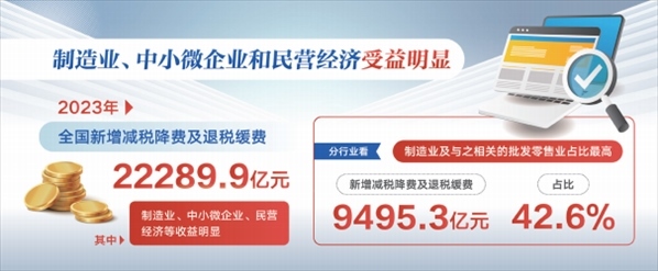 超2.2萬億元——這是2023年全國(guó)新增減稅降費(fèi)及退稅緩費(fèi)的總規(guī)模,其中超七成“落”于民營(yíng)經(jīng)濟(jì),稅費(fèi)紅利精準(zhǔn)“落袋”,助企減負(fù)增活力。