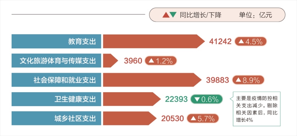 2023年,盡管財(cái)政收支壓力很大,但民生投入力度不減。超過27萬億元全國(guó)一般公共預(yù)算支出中,教育、社會(huì)保障和就業(yè)支出都在4萬億元上下,衛(wèi)生健康、城鄉(xiāng)社區(qū)支出都超過了2萬億元。