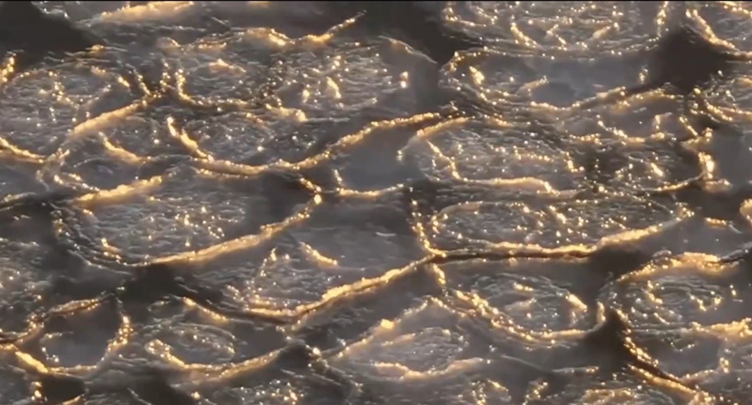 農(nóng)歷二月二日,“雪龍2”從南極返回祖國的途中,路遇最美海冰——“龍鱗”冰。在夕陽的照射下,每一瓣“龍鱗”冰都勾上了金邊。