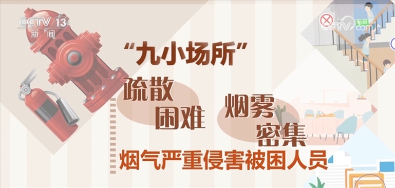 “九小場所”是指建筑面積在300平方米以下的小商場、額定就餐人數(shù)100人以下的小飯店、床位數(shù)50張以下的小旅館,以及小型的公共娛樂、休閑健身、醫(yī)療、教學、生產(chǎn)加工、易燃易爆危險品銷售儲存等場所?!熬判鏊币坏┏霈F(xiàn)火災(zāi),容易形成大面積燃燒。通常,“九小場所”疏散困難、煙霧密集,煙氣嚴重侵害被困人員。同時,水源缺乏、滅火救援難度大,極易造成人員傷亡。